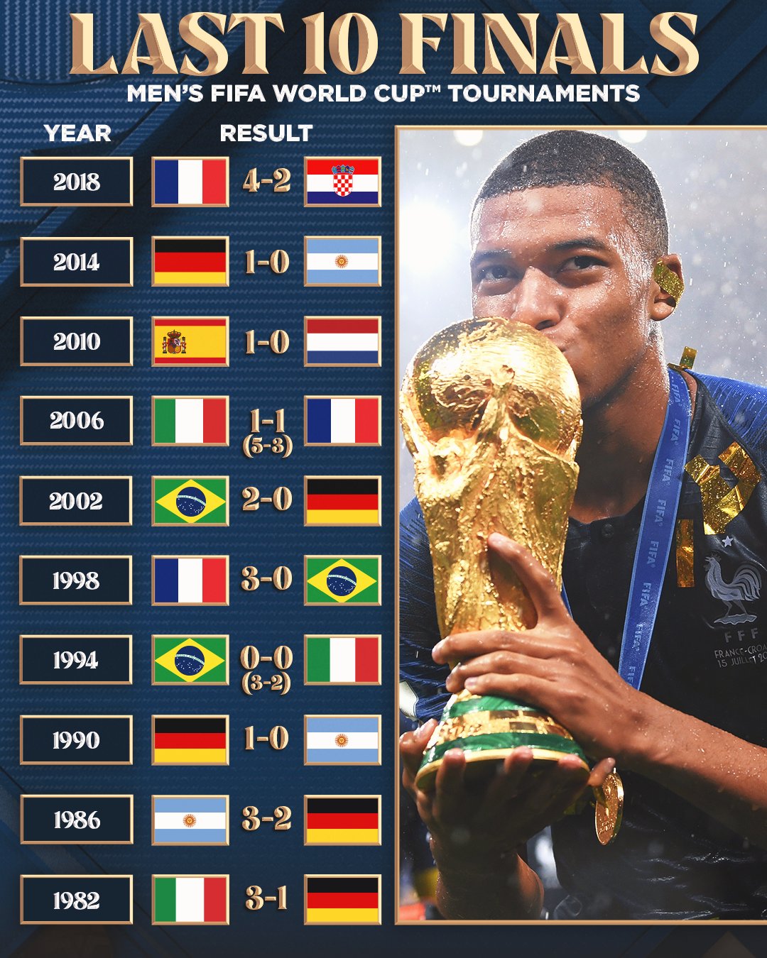 FIFA World Cup Winners List (1930 2022) Qatar World Cup Winners List Web find out the full list of men's fifa world cup champions from 1930 to 2022, with scores, host countries and participating teams. See the record winners, the latest champion and the. Web find out the champions of the fifa world cup, the most prestigious international football competition, from 1930 to 2022. Web 24 rows the latest world cup final. Qatar World Cup Winners List.